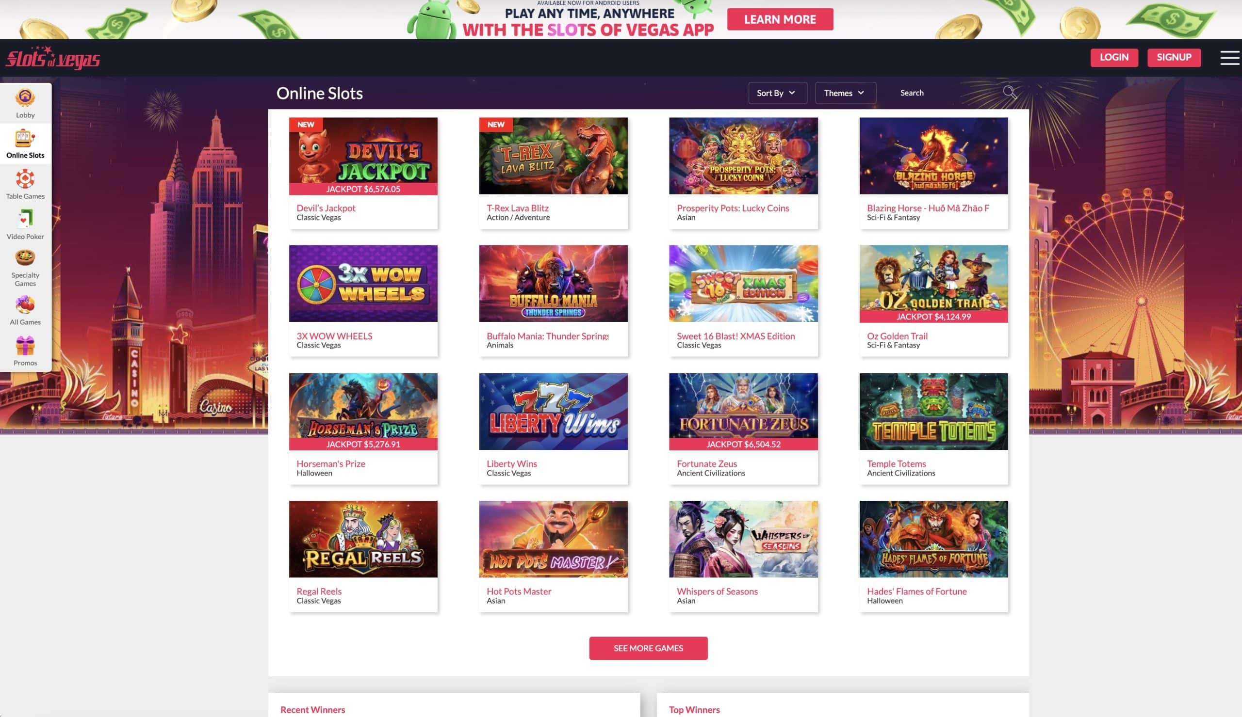 Slots of Vegas is built for Minnesota online casino players who value long-term perks more than one-time hype. The lobby sticks to an old-school layout that loads quickly and keeps core actions—games, cashier, promotions, and support—easy to reach on both desktop and mobile. The game mix leans heavily toward RTG slots, with a strong lineup of classic three-reel titles, bonus-heavy video slots, and progressive jackpots. Table games round things out with multiple blackjack and roulette variants, plus video poker and keno for players who prefer steady, familiar gameplay.